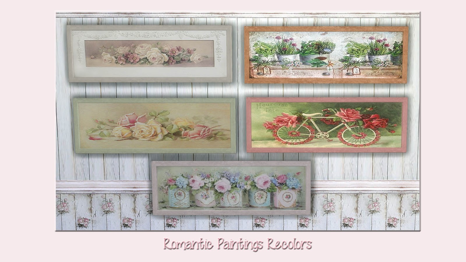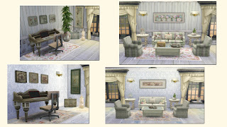 Hello Everybody! For today I present to you this new set. Finally I made it to create a new set for The Sims 4 , like most of the time, I took my favourite thematic the shabby chic and bring it in some decorations like wall, rug and some paintings plus my first attempt in some flooring with some unexpected good results.